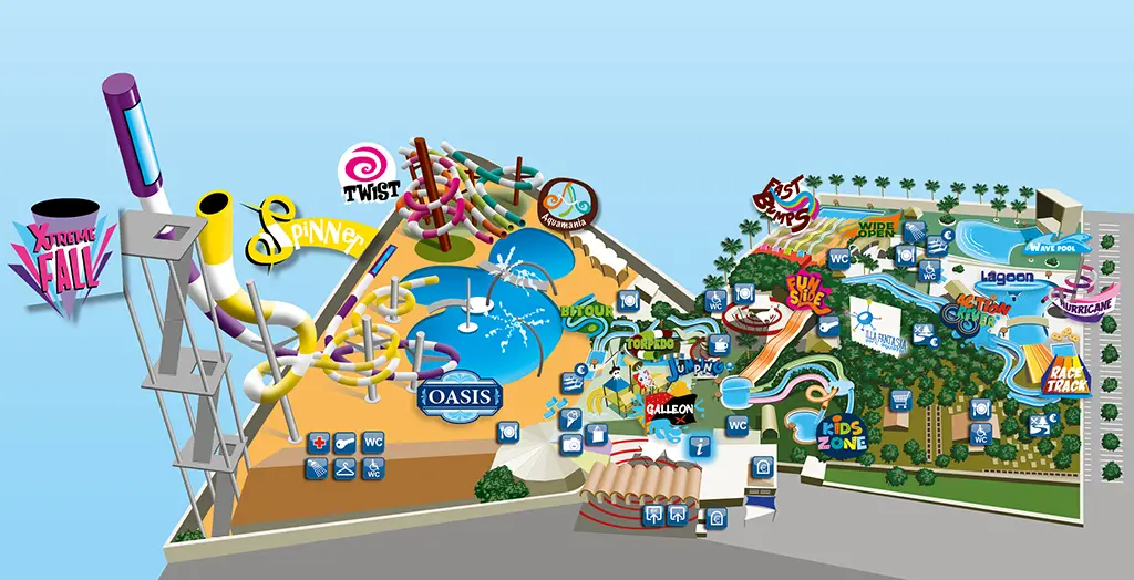 ¿Quieres saber que te espera en Illa Fantasia? Más de 22 toboganes, 3 macro piscinas y una gran zona de picnic (Coste 1€). Sin prisas, sin necesidad de hacer colas y con un personal preparado para conseguir que disfrutes de una jornada en familia inolvidable.